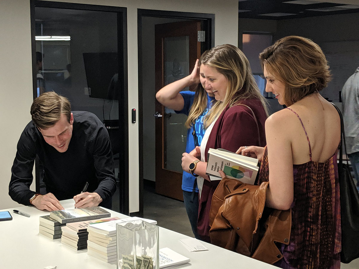 Signing books and chatting with attendees after a speaking event at Third Place Books in Seattle.