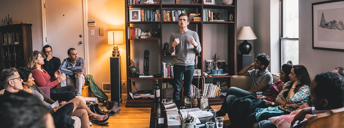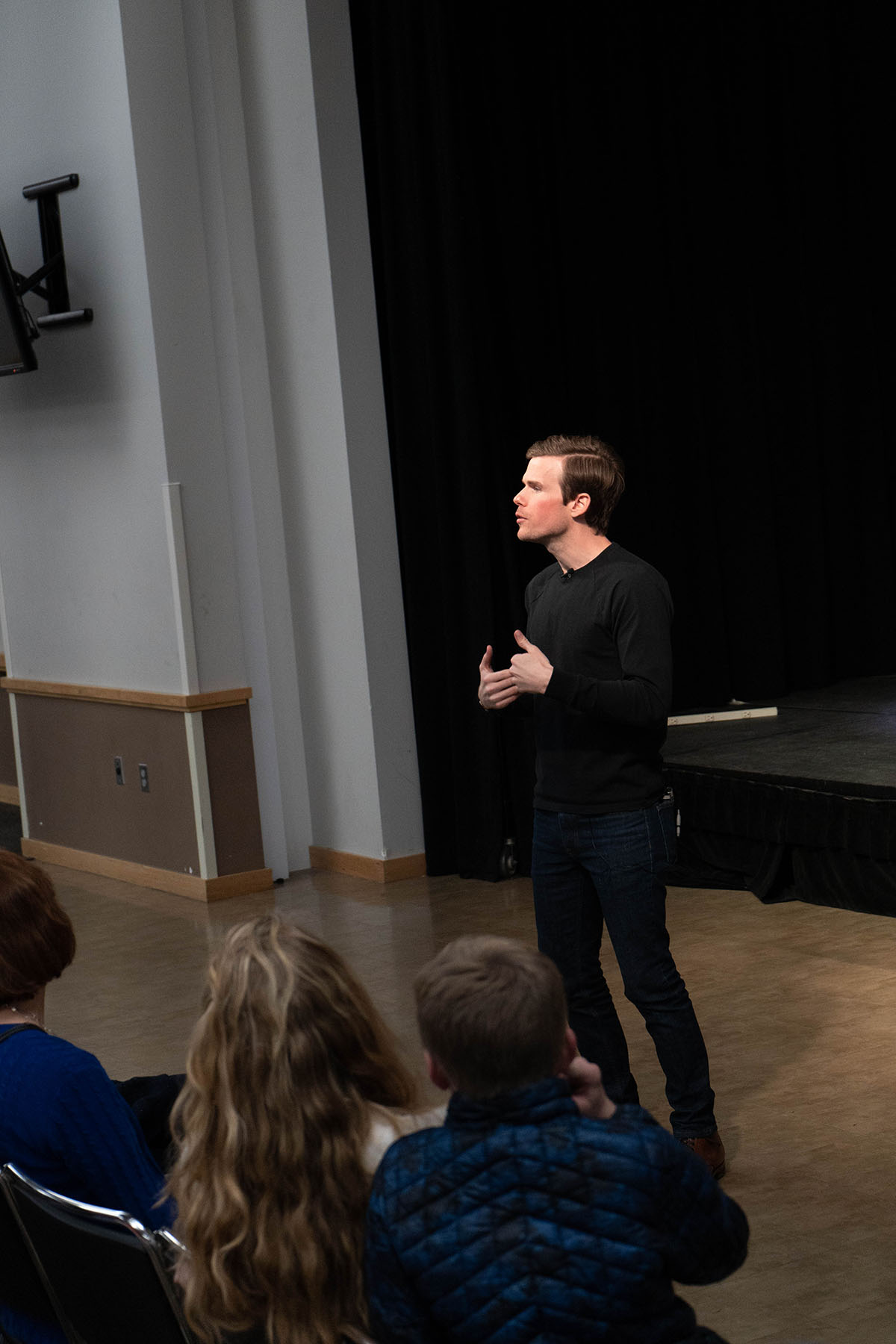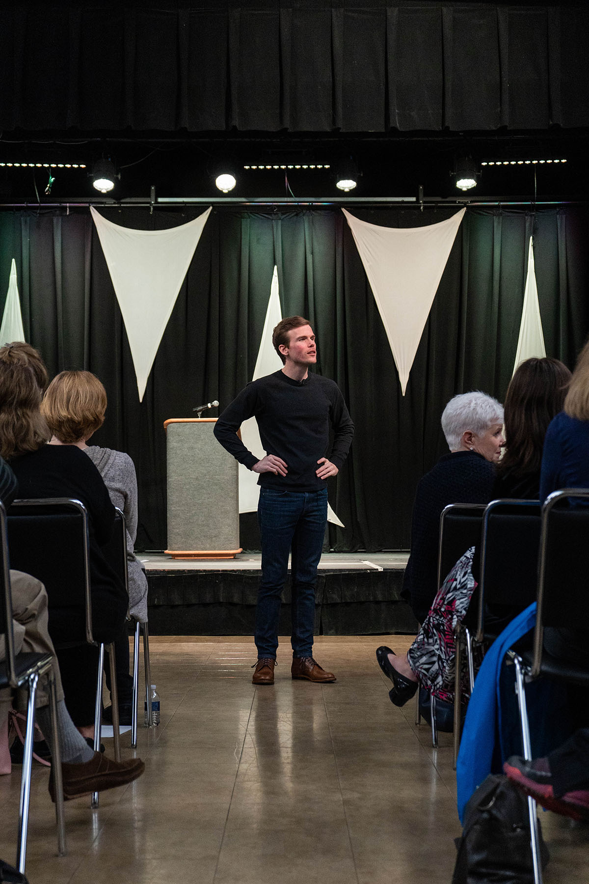 Speaking at the community center in Troy, Michigan. Photo by Alex Young.